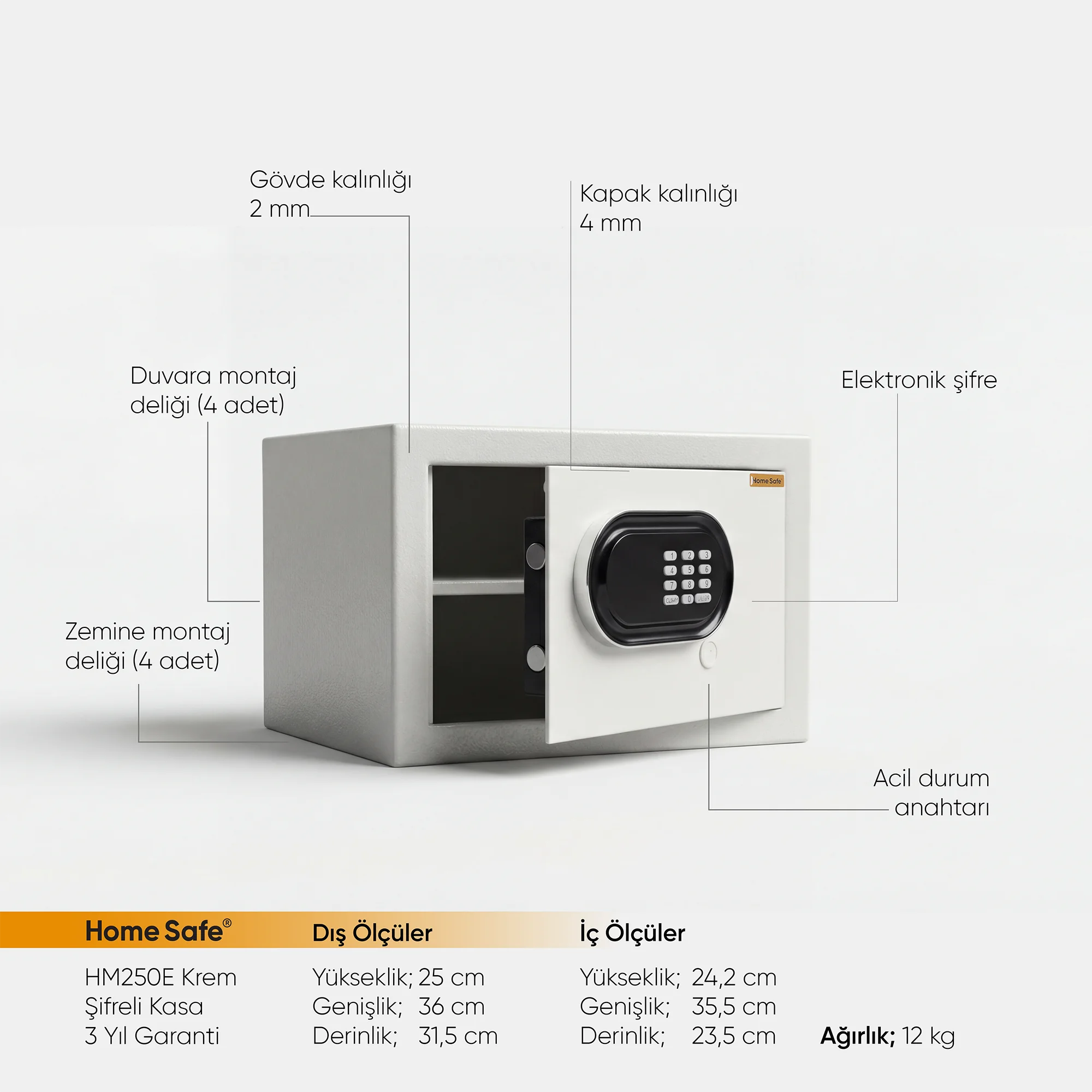 6 Haneli master şifre ile kasayı açabilme imkânı.