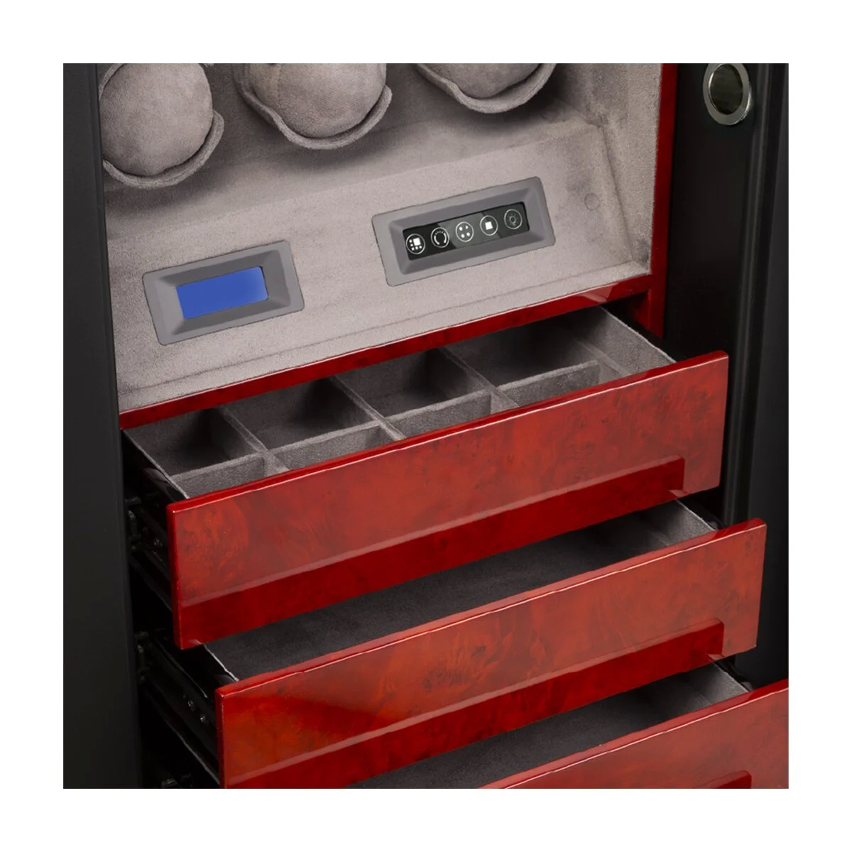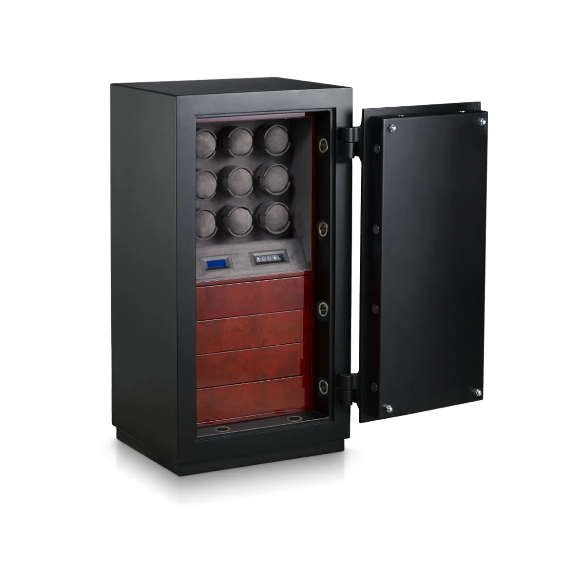 Kasa içerisinde 9 adet saatli ahşap watch winder ve 4 çekmece bulunmaktadır.