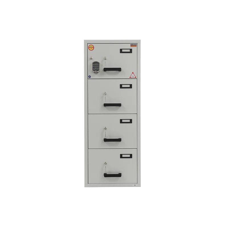 Ofis ve şirket kullanımı için kullanılması uygun olan Valberg FC 4 Evrak kasası ile ticari işletmeniz için değerli olan evraklarını yangın tehlikesine karşı koruyabilirsiniz. 3 adet çekmecesi bulunan FC 4 ile evraklarınızı kolaylıkla sınıflandırabilirsiniz. 1000° ısıya karşı 60 dakika boyunca dayanıklıdır. LFS 60P nacnh EN 15659'a göre. Her bir çekmecenin ağırlık taşıma kapasitesi 50kg'dir. Dökümanlarınızı ve klasörlerinizi kolaylıkla sınıflandırabilirsiniz. Çizilmeye dayanıklı elektrostatik boya, kabinin her tarafına uygulanmıştır. Çekmeceler hem merkezi bir kilit ile kontrol edilir, hemde bağımsız olarak her çekmece ayrı ayrı kilitlenebilir. İsteğe bağlı anahtarlı veya elektronik şifre takılabilir. Aynı anda birden fazla çekmecenin açılmasına engel olan emniyet mekanizması bulunmaktadır. Kollar ve etiket tutucular yumuşak dokunuşlu plastik malzemeden üretilmiştir. Renk : Ral 7035 (Açık Gri) Kasa tarafımızca 2 yıl boyunca garanti kapsamındadır.
